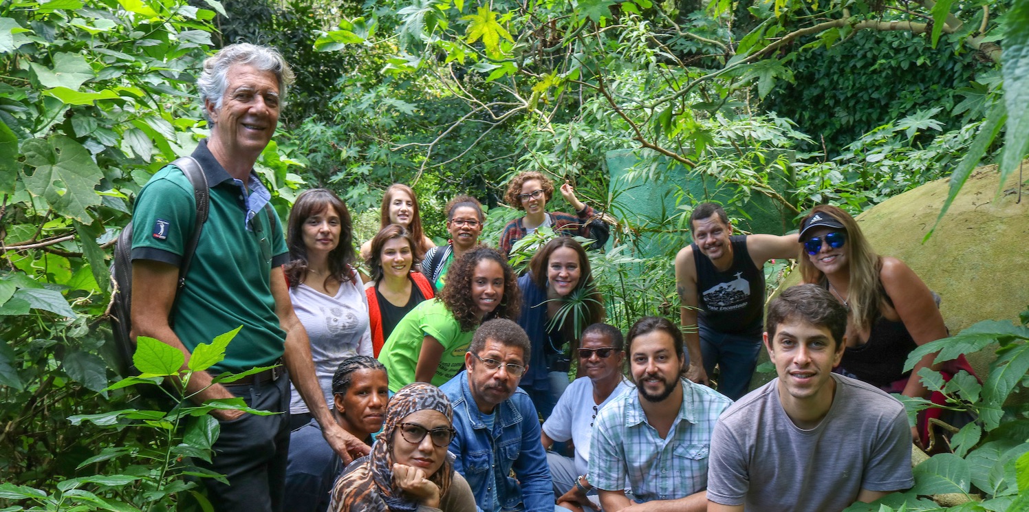Na manhã de 8 de setembro, o segundo encontro da Rede Favela Sustentável (RFS) começou na comunidade do Vale Encantado—uma pequena favela no bairro Alto da Boa Vista, no meio da Floresta da Tijuca. O encontro reuniu representantes de organizações comunitárias que promovem a sustentabilidade ambiental e a resiliência social na Cidade de Deus, no Morro dos Prazeres, no Quilombo do Camorim e em Sepetiba—juntamente com membros da equipe da Comunidades Catalisadoras (ComCat) e colaboradores (incluindo engenheiros ambientais e uma defensora pública). Originalmente fundada por três famílias que trabalharam em plantações de café na região no século XIX, hoje a comunidade é composta de 25 residências e 116 moradores. O Vale Encantado é considerado modelo de sustentabilidade em favelas.