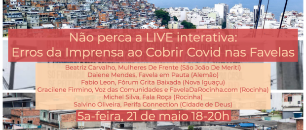 Inscreva-se na LIVE interativa “Erros da Imprensa ao Cobrir Coronavírus nas Favelas”